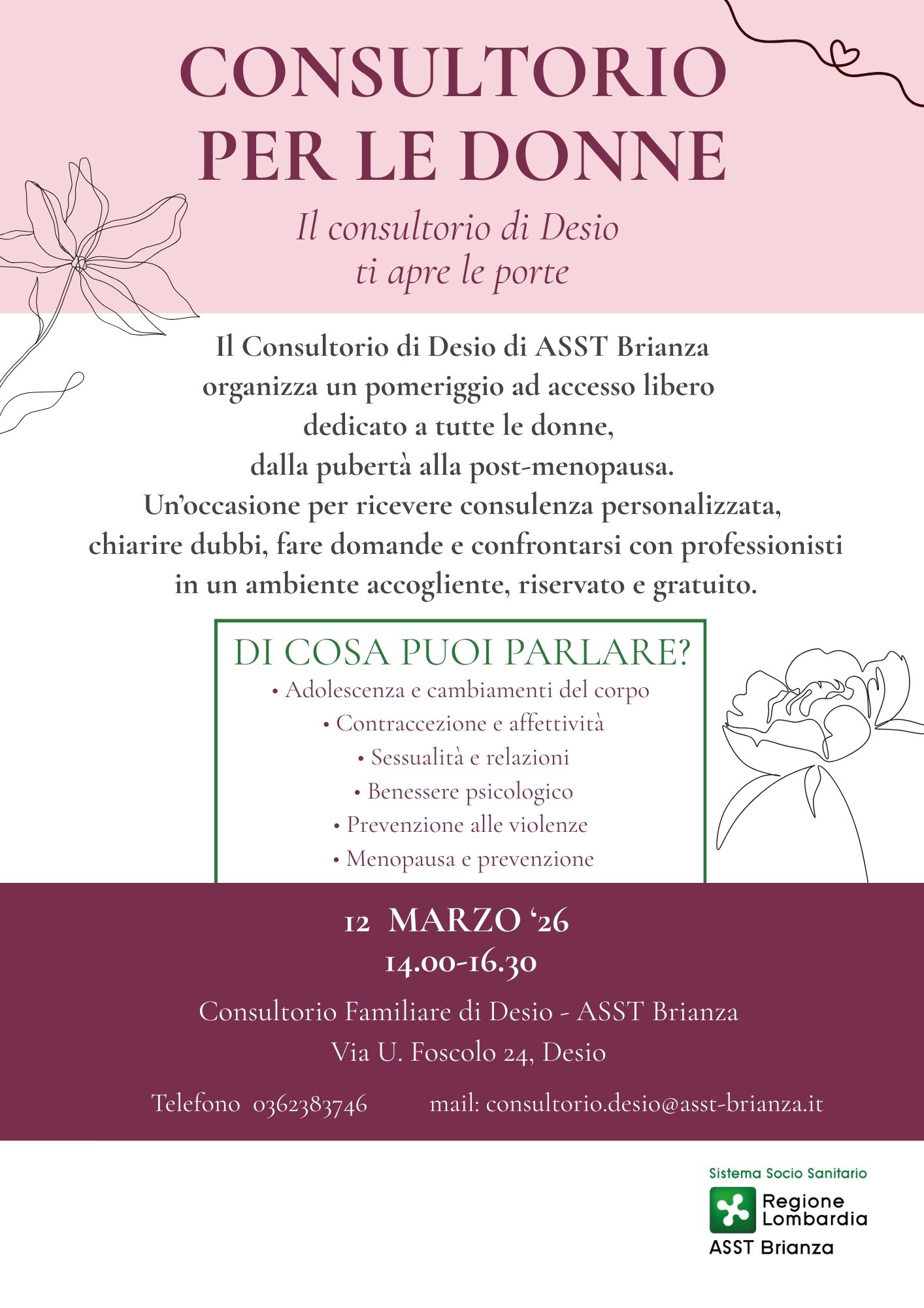 CONSULTORIO DI DESIO - Via U. Foscolo 24 - 12 marzo 2026 dalle 14 alle 16.30