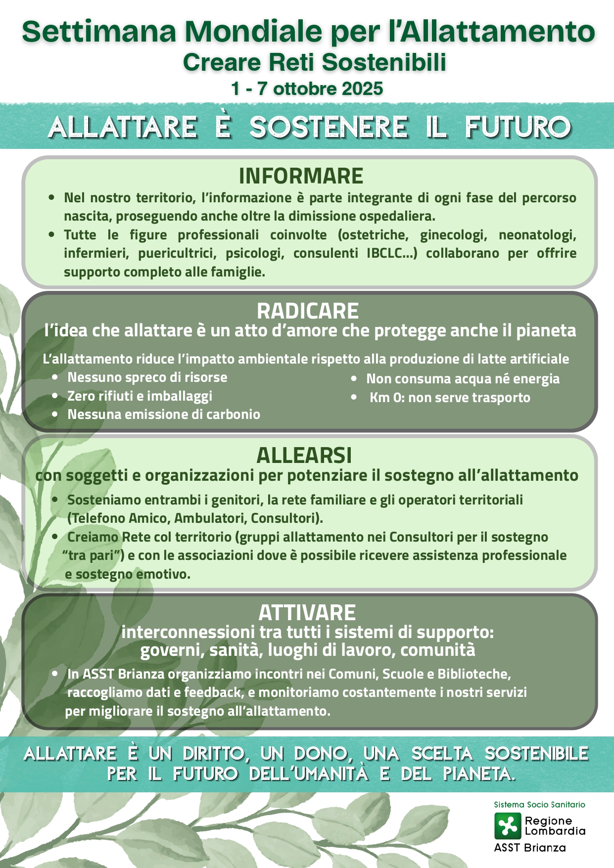 Per l'occasione, ASST Brianza ha realizzato il poster allegato in cui mette in evidenza il proprio impegno a sostegno dell'allattamento.